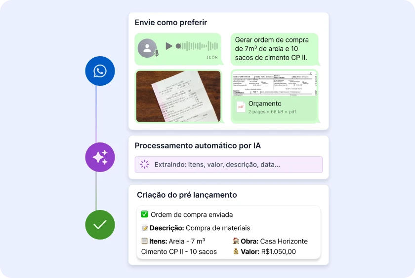 "Uma plataforma completa e prática. Configuro templates e diários de obra, controlo meu financeiro, monto orçamentos e ainda compartilho tudo isso com meus clientes. Sensacional."