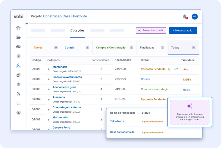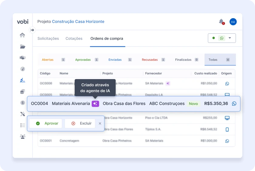 "A VOBI tem facilitado nosso dia a dia com a gestão das obras! Agora, nossos clientes acompanham o andamento dos seus projetos e obras! Estamos muito felizes com o uso da plataforma."